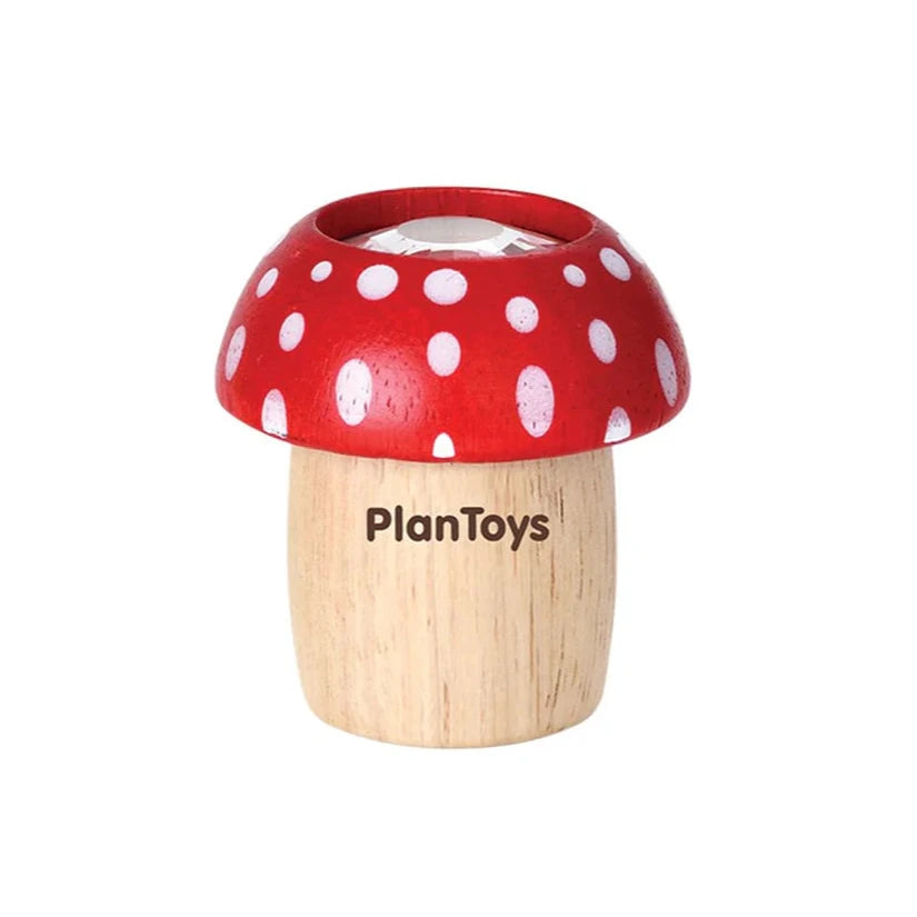 Discover a world of color and imagination with the Mushroom Kaleidoscope! See things differently through its dynamic lens and strengthen creativity. Encourage outdoor exploration with its sustainable rubberwood construction, chemical-free glue, and organic pigments. Available in 3 fun colors with a 3 cm lens.