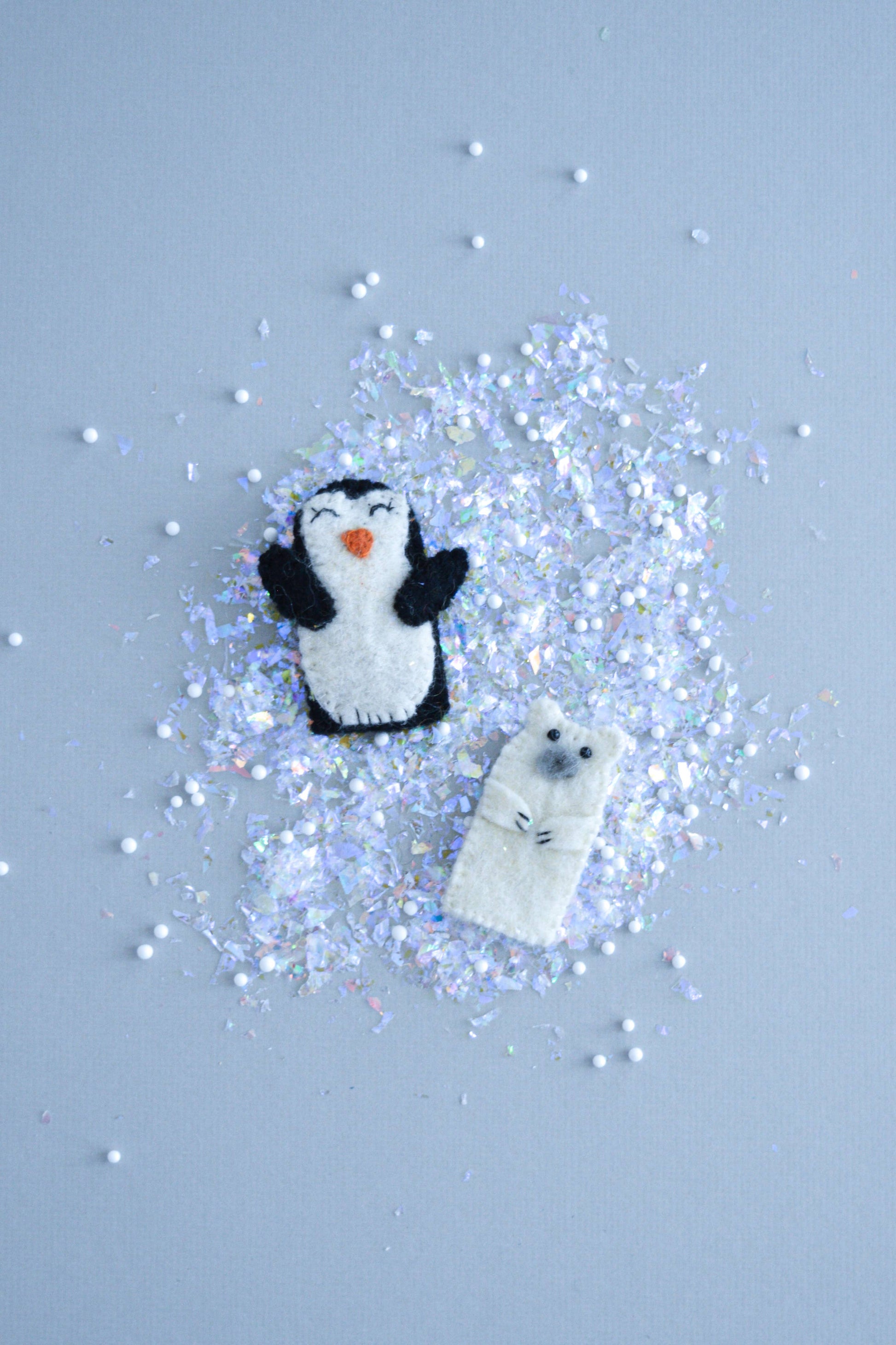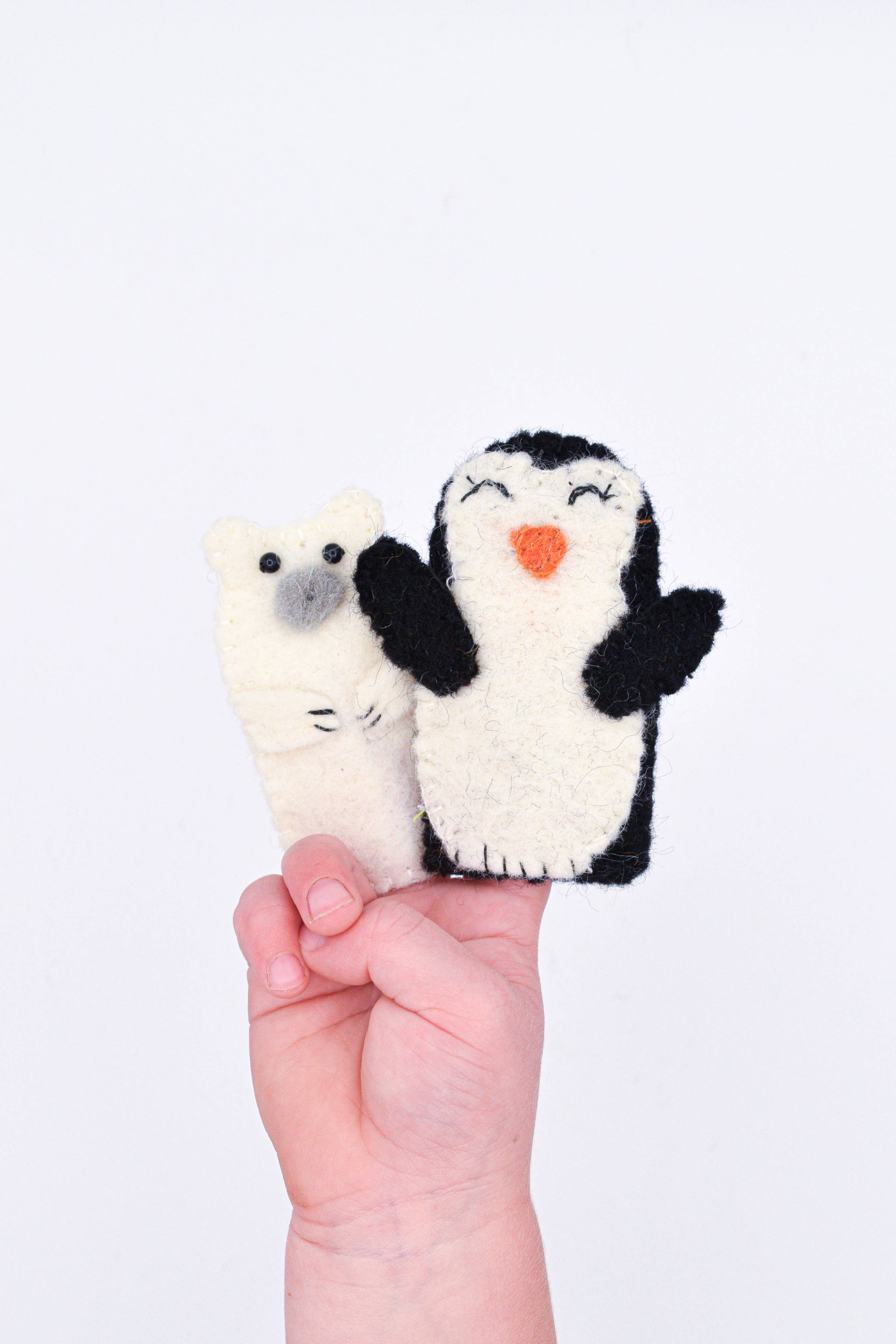 Handmade arctic animal puppets. Wool felt puppet set. Penguin pretend play toy. Polar bear finger puppet. Soft felt puppet duo. Arctic storytelling props. Winter animal pretend play. Montessori animal toys. Eco-friendly kids toys. Educational felt puppets. Puppet set for toddlers. Handcrafted sensory toys. Arctic nursery décor. Boutique toy store item. Non-toxic wool felt puppets. Imaginative play polar animals. Pretend play sensory toy. Heirloom-quality puppet set. Fair Trade Toy.