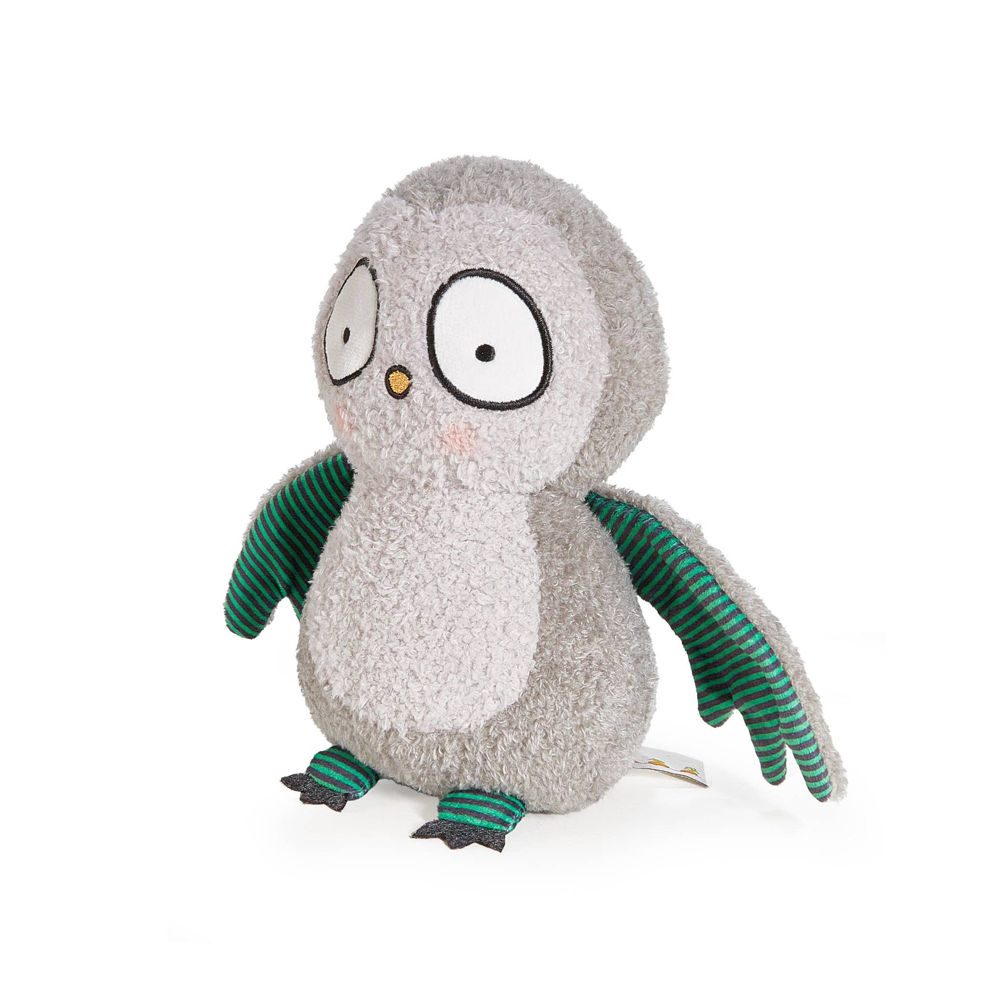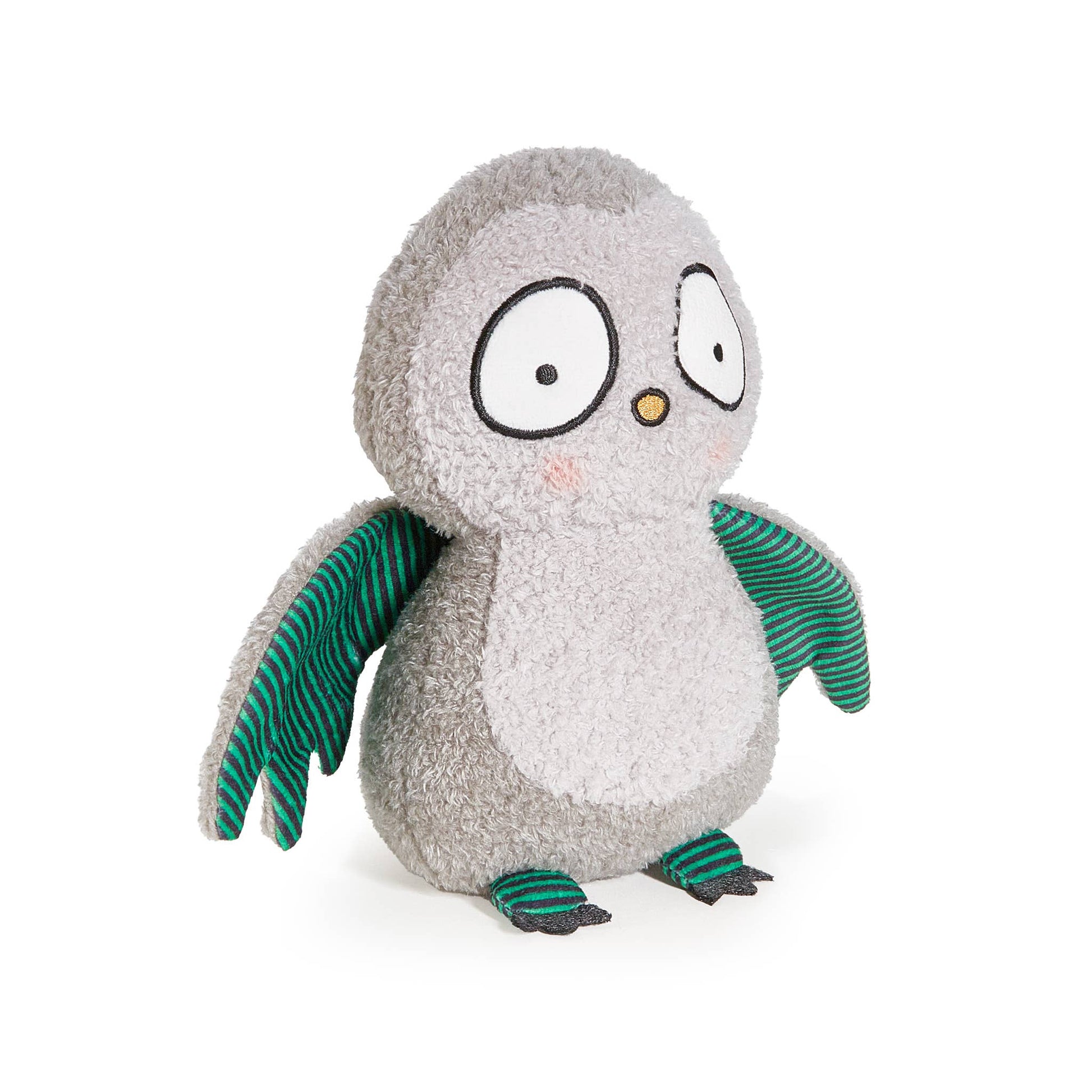 Whoooo's ready for some spooky fun? Meet Wow the Owl, wise and playful with glow in the dark eyes! A soft gray body and fun black and green striped knit jersey accents on the wings and legs. Wow is full of festive flair. Whether perched on a shelf or snuggled up close, this charming owl is ready to celebrate the season in style. A not-so-spooky companion that's just the right mix of cute and cozy!