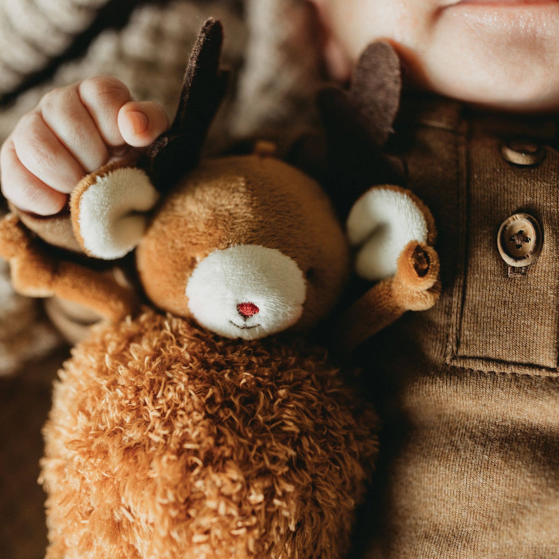 ReinDeer Me is ready to bring some Holiday cheer to your little one, with a squishy, huggable body and super soft scraggly fur. Dangly knotted limbs are fun for babies and extra cute, and embroidered features make this adorable plush pal safe for little ones of all ages! Limited Edition - these stuffed animal friends are here for just a short while, and they won't last long!
