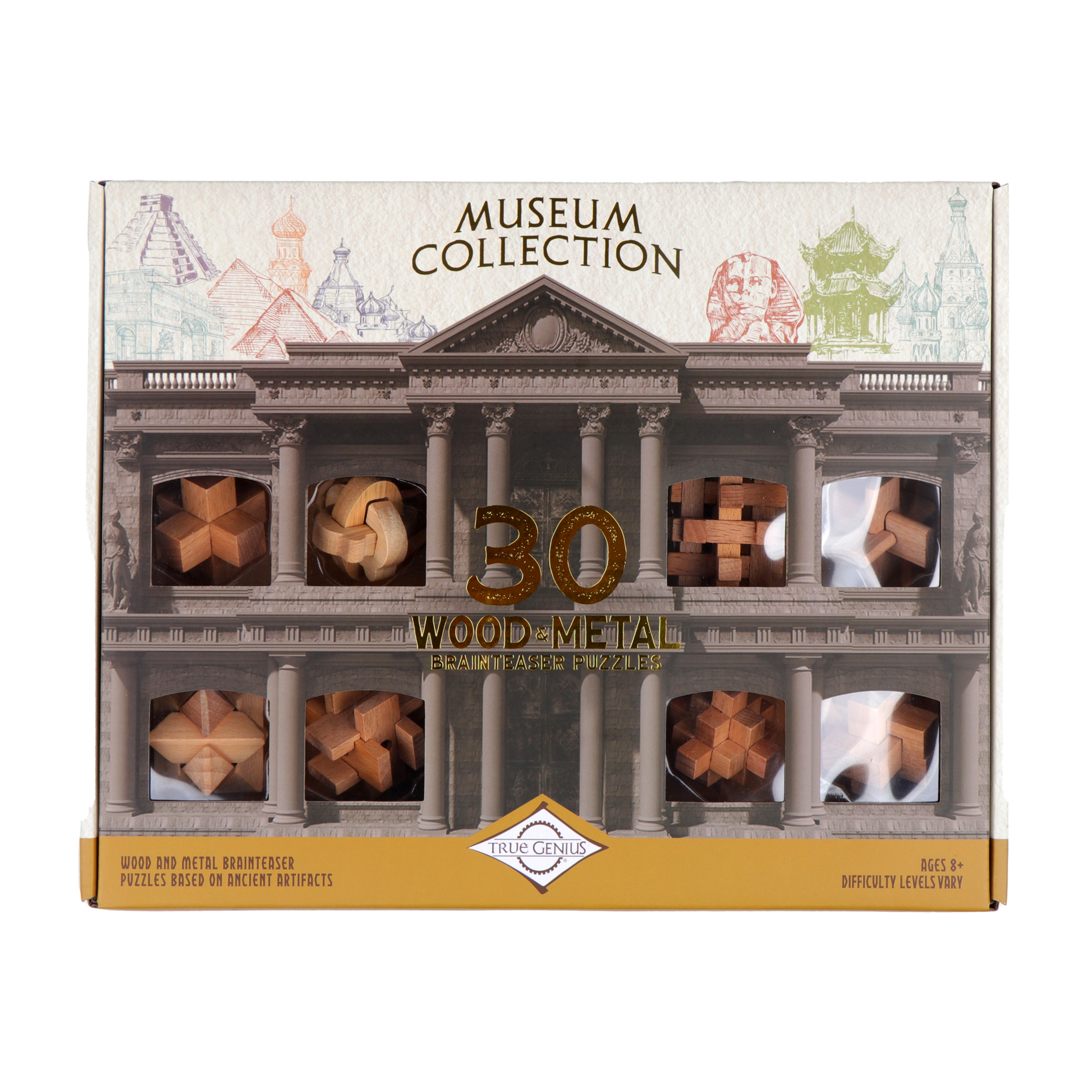 Get ready to put your brain to the test with Museum Collection Puzzles! This collection of 8 wooden and 22 metal puzzles will provide endless hours of brain teasing fun. Perfect for players 8 years and up, these puzzles are created by Project Genius. Are you up for the challenge?