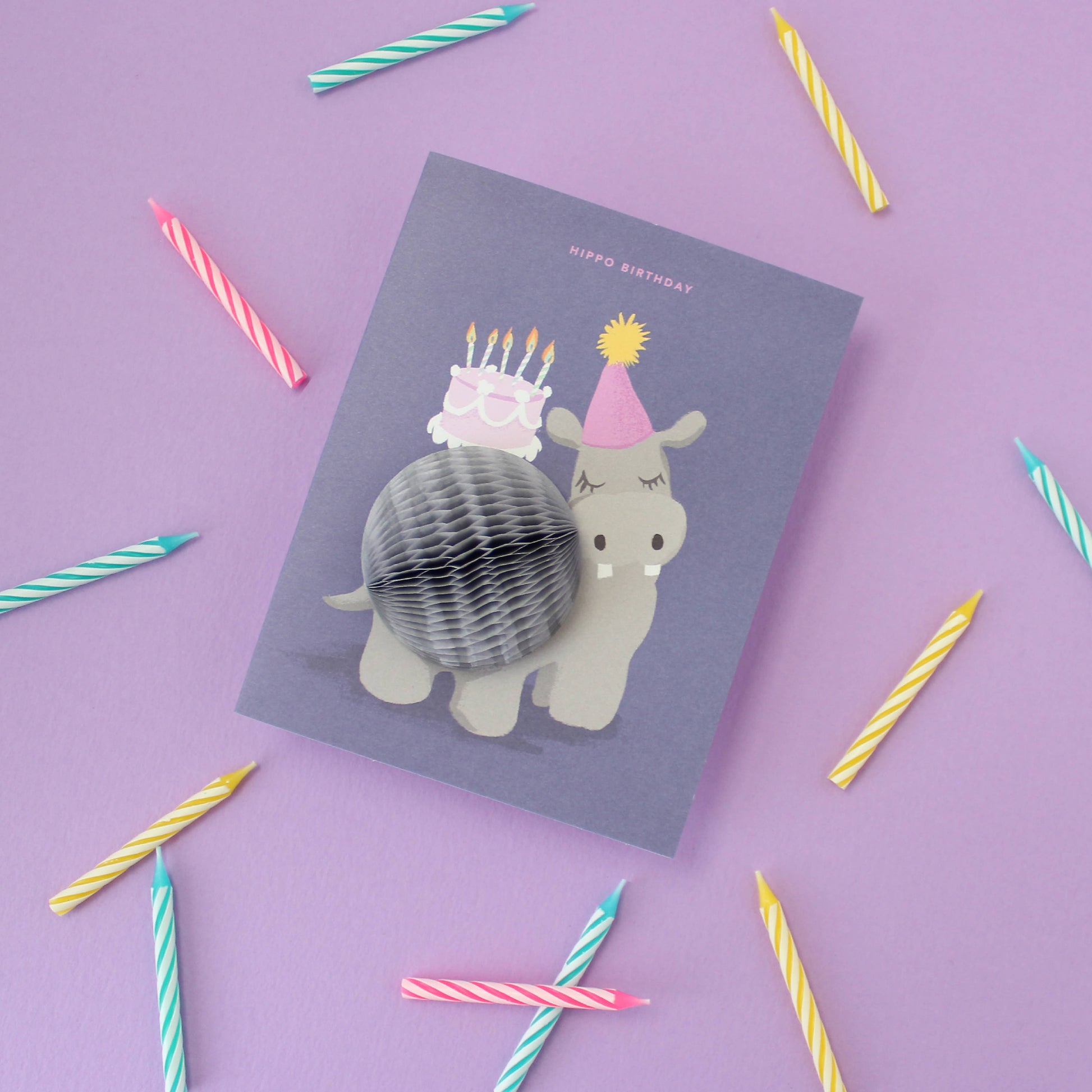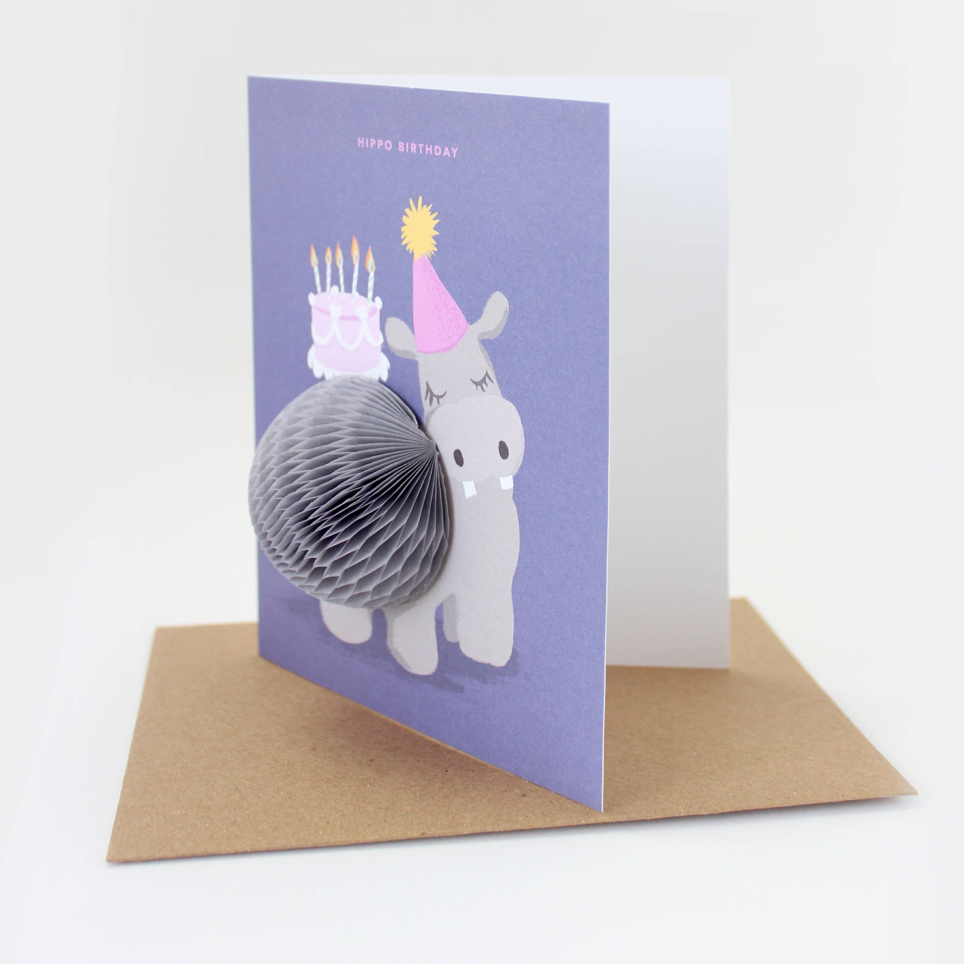 Packaged in a clear cellophane sleeve • Outer sticker highlights this card’s special feature • Instructions included • Sustainably printed in the USA Send them tons of love on their birthday with this sweet honeycomb hippo pop-up card! Package dimensions L 5.75" x W 4.5" x H 0.25"