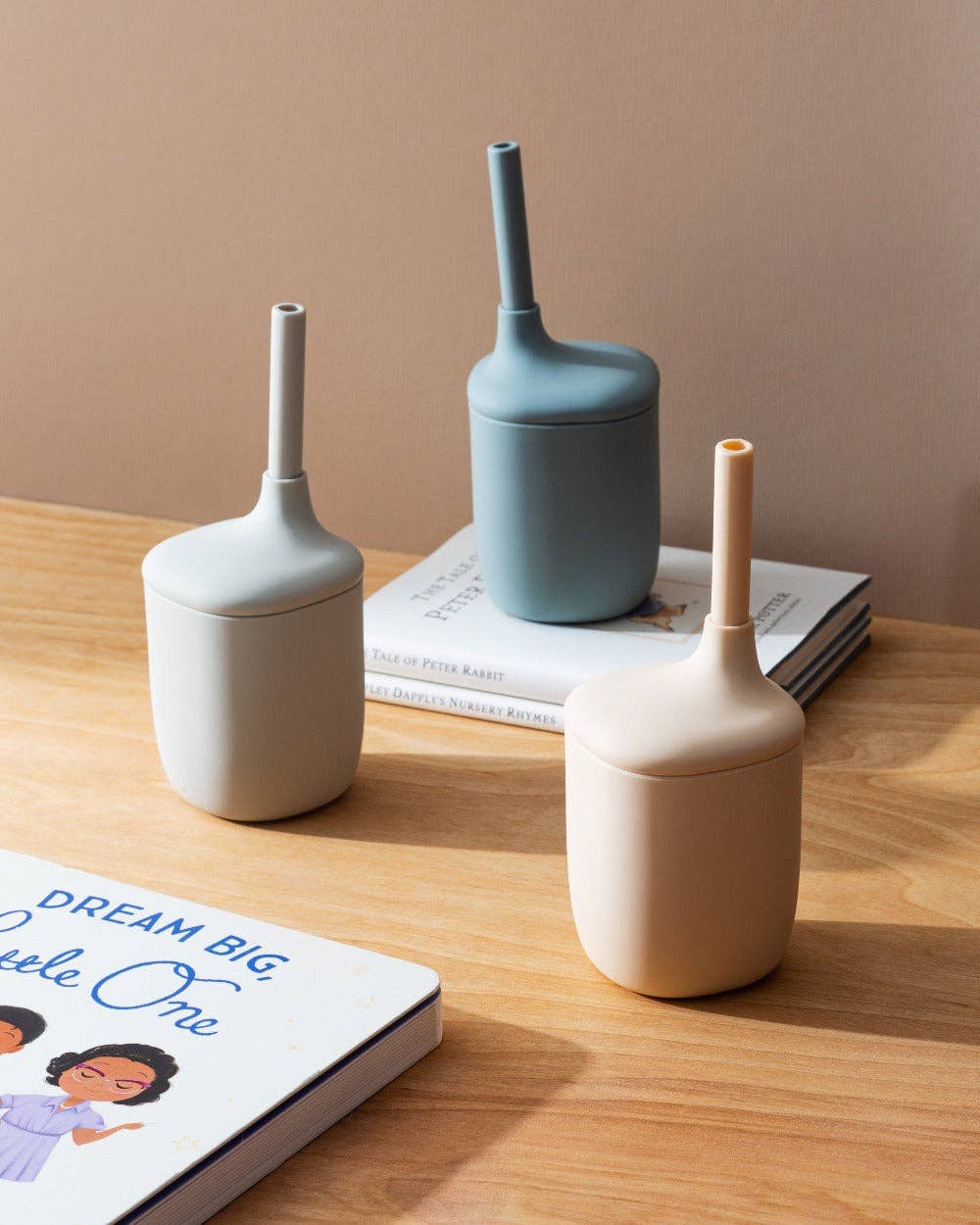 The Robbie cup is perfect for little ones who are confident in using a straw. The Robbie cup has a removable lid, spout and fast flow straw. It is lightweight with a square design. Made of 100% food-grade silicone and free of nasty chemicals and fillers.