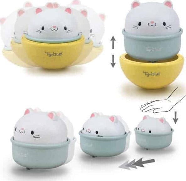 This 2-in1 Pal is full of surprises! The Rocking Rollers – Cat is a multifunction wobble toy that rocks back-and-forth, but when you remove it from the base and press down, it also glides across the room as a speedy racer! No batteries are required and it eco-friendly and made from bio-plastic.