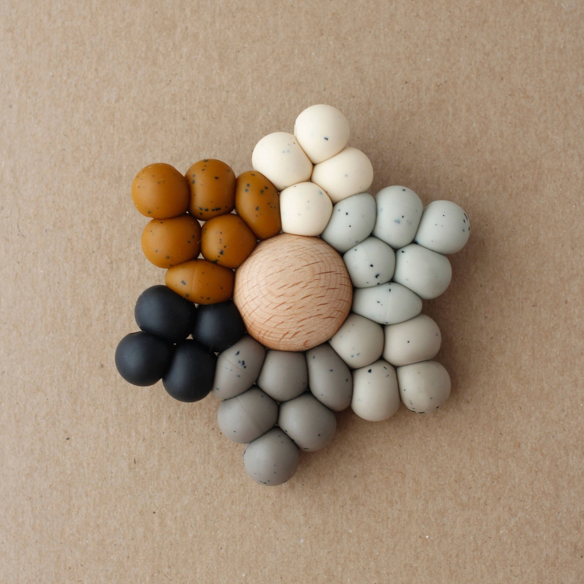 Our unique Star teether is a mix of soft silicone and beechwood that have been treated with beeswax. Teether was designed with safety in mind which will help to soothe and comfort the baby's tender gums. Rainbow shape teether is easy for small hands to grab, hold and explore! We recommend treating wood with beeswax or coconut oil for smoothness and longer-lasting!